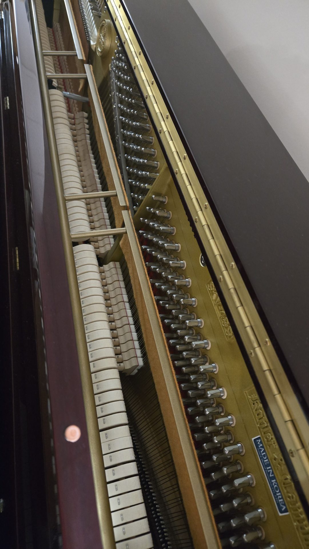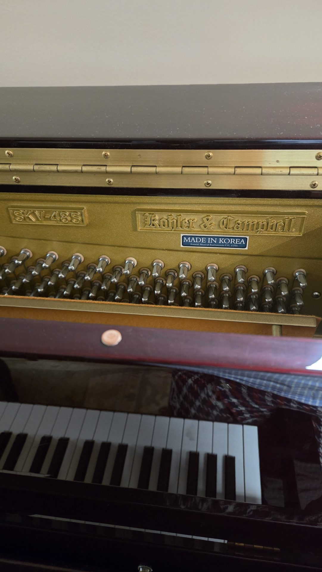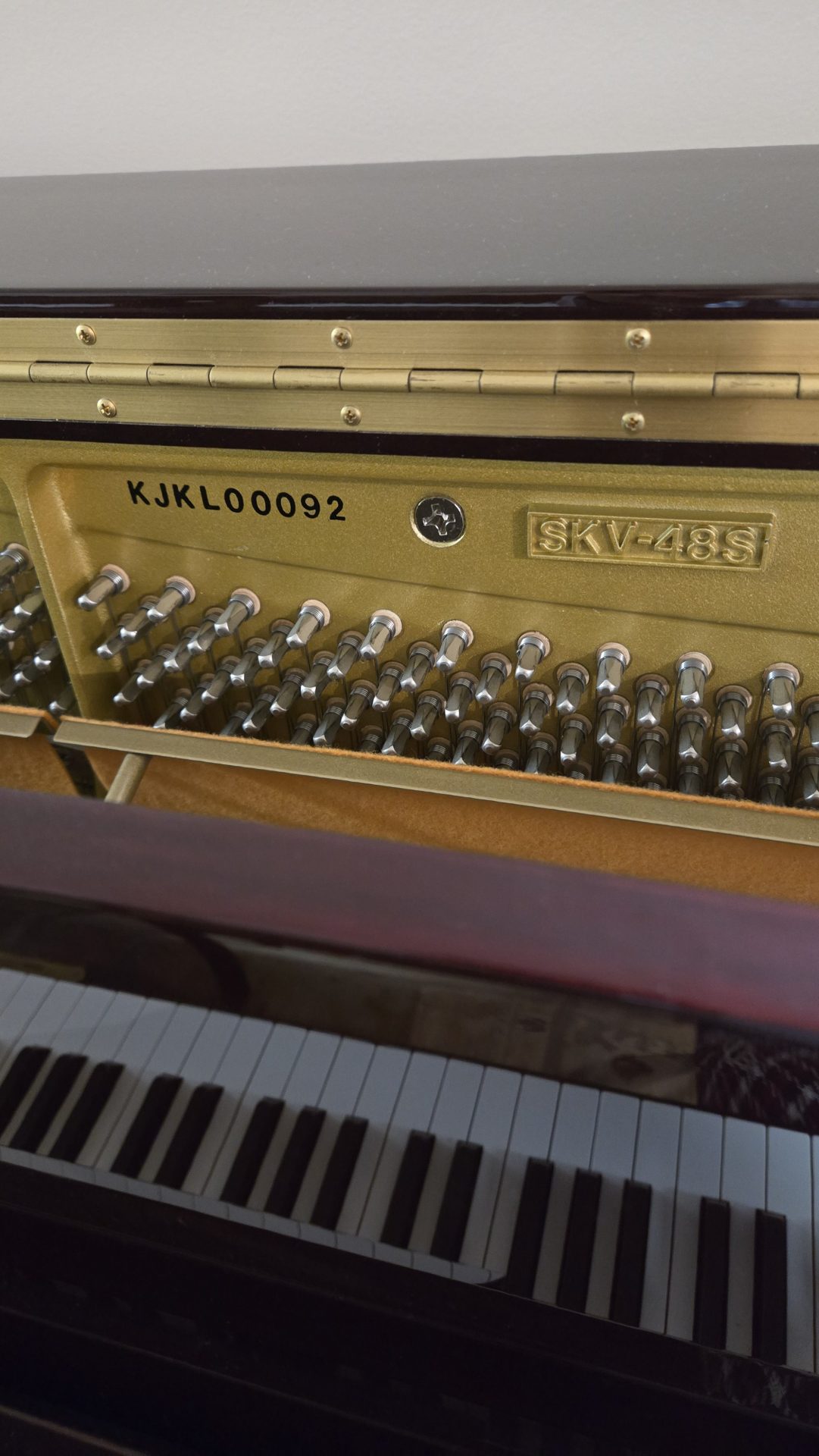 Its a 48″ Professional upright in very dark mahogany high gloss finish with strong tonal presence and luxuary apprearance
